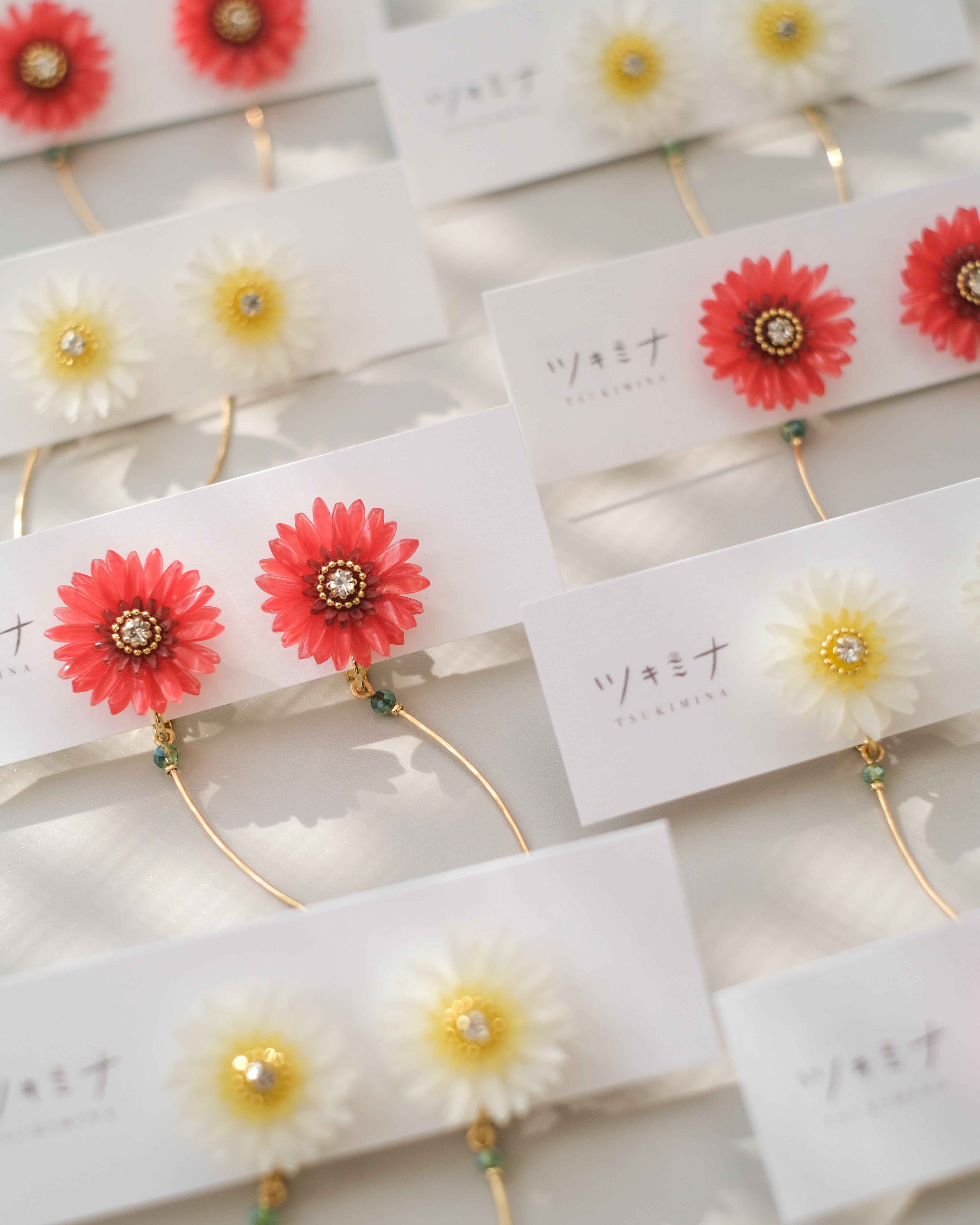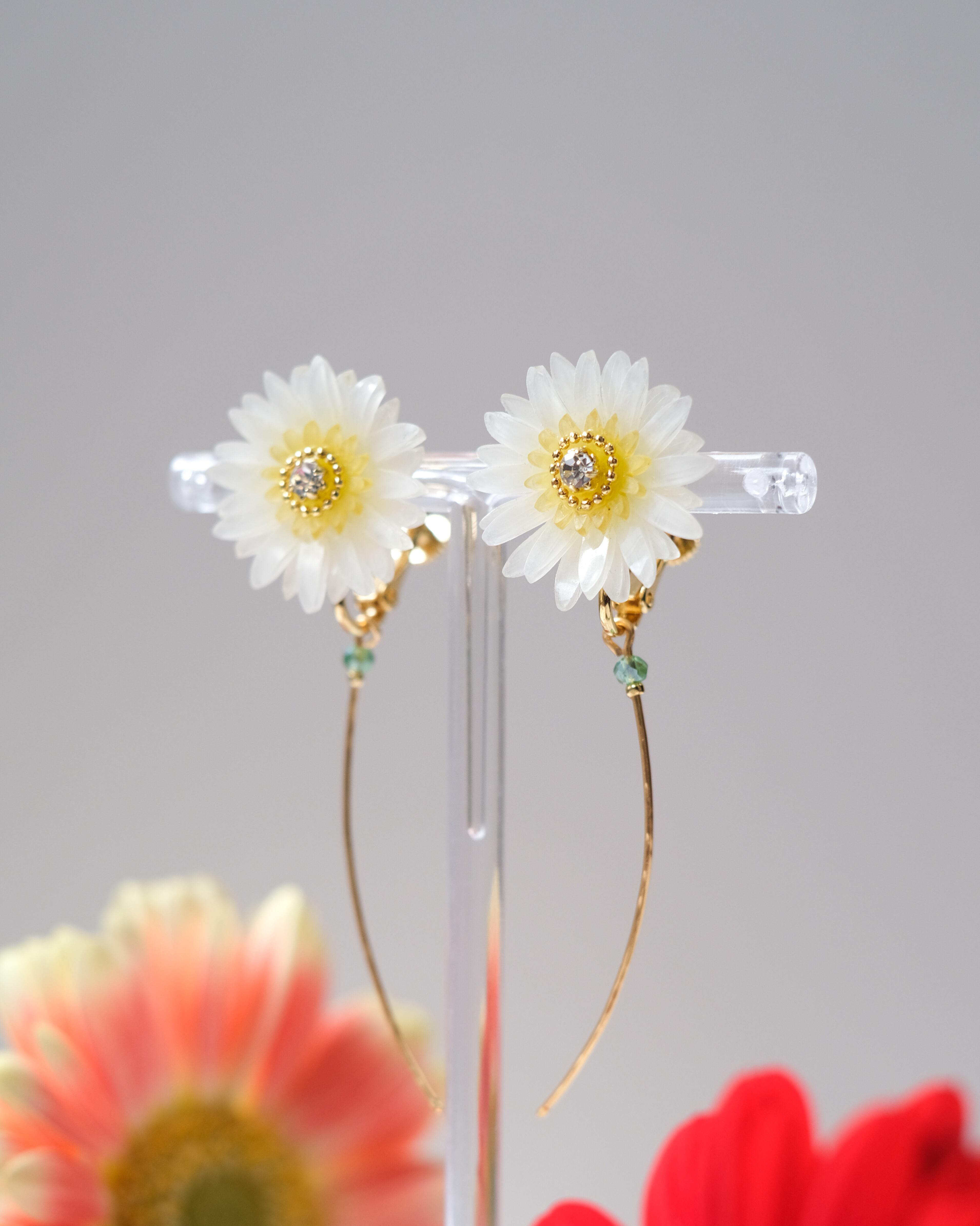透明感のある花の中央には、キラリと輝くビジューを添えて