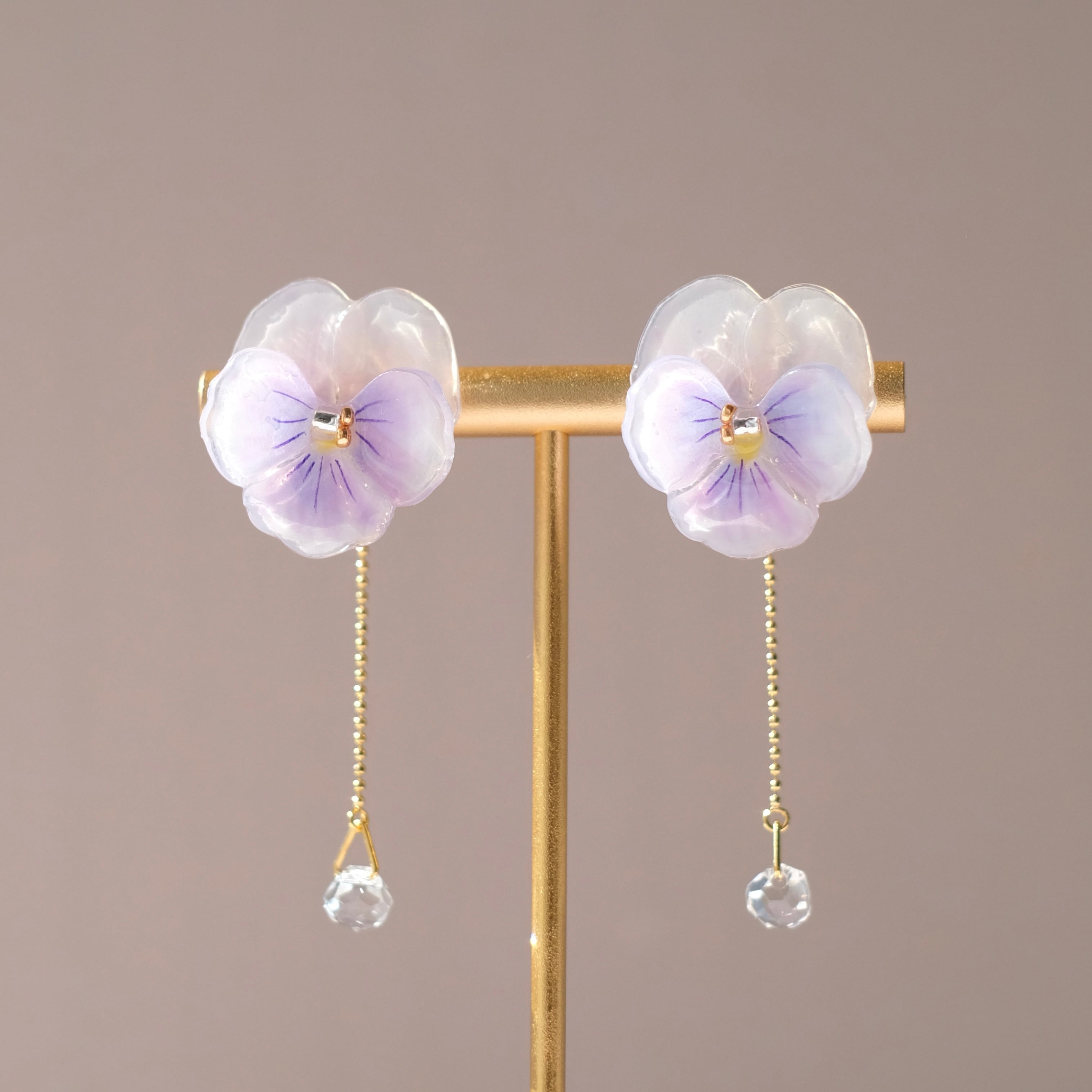 耳元にひとひら、手描きで仕上げたビオラの耳飾りです。