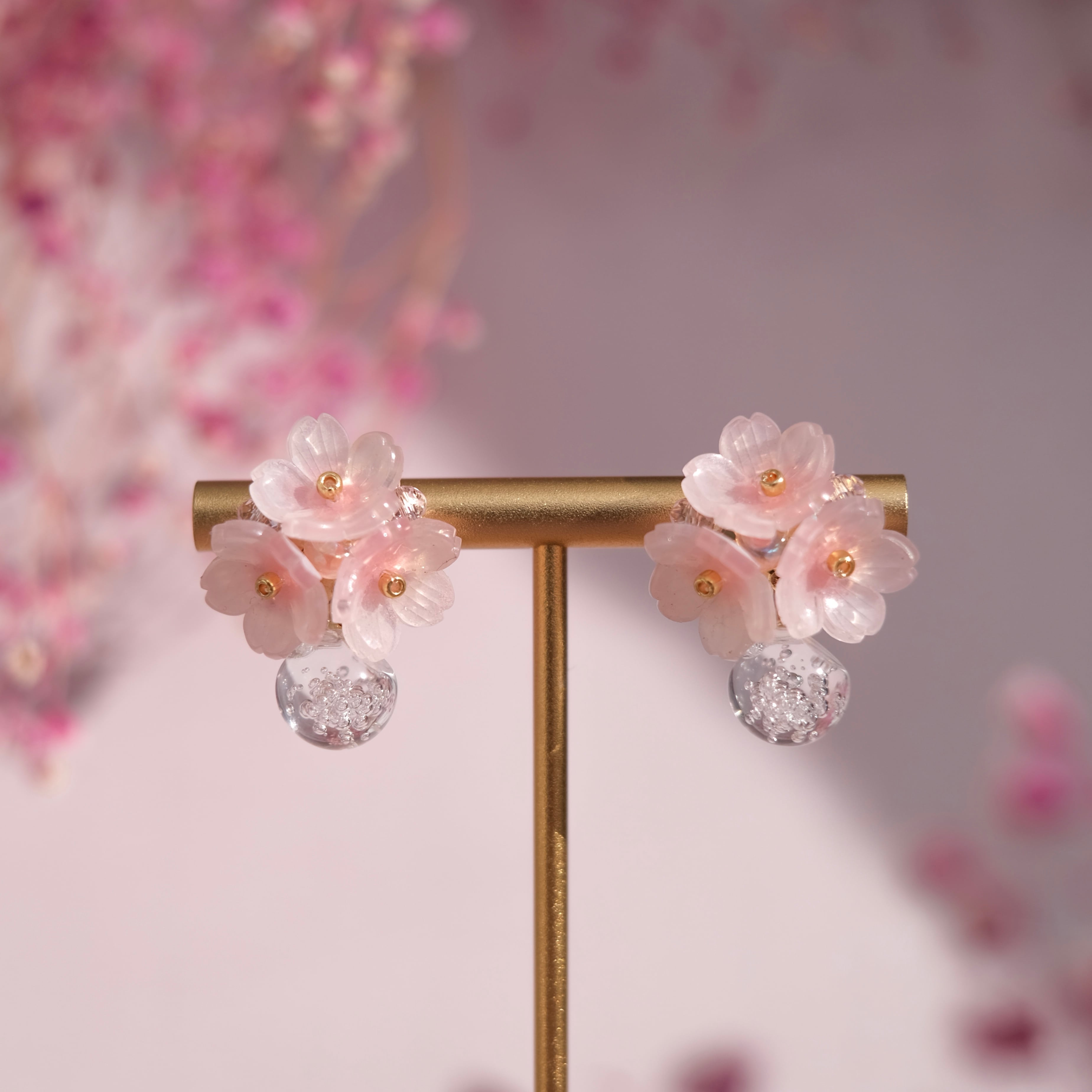 桜の儚い透明感を表現した耳飾りです。